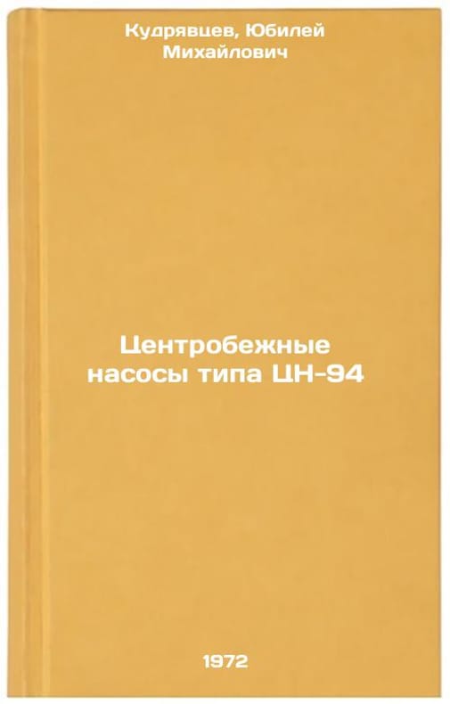 In Russian. Kudryavtsev, Yubilei Mikhailovich. Centrifugal pumps of the TN-94 type. Leningrad: 1972. All images are for identification of editions only. Several books of the same edition may be available. Please feel free to request photos of available books. SKU7421224