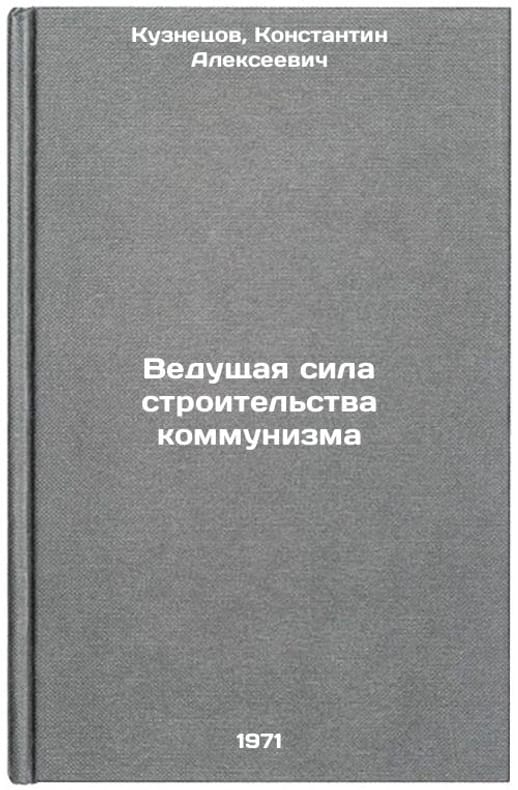 In Russian. Kuznetsov, Konstantin Alekseevich. The Leading Force in the Construction of Communism. Leningrad: 1971. Vedushchaya sila stroitel'stva kommunizma. In Russian /Leading Force for Building Communism . All images are for identification of editions only. Several books of the same edition may be available. Please feel free to request photos of available books. SKU7422043