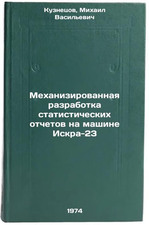 In Russian. Kuznetsov, Mikhail Vasilievich. The mechanized development of statistical reports by the Iskra-23 machine. Moscow: Statistics, 1974. Mekhanizirovannaya razrabotka statisticheskikh otchetov na mashine Iskra-23. In Russian /Mechanized development of statistical reports on the Iskra-23 machine. All images are for identification of editions only. Several books of the same edition may be available. Please feel free to request photos of available books. SKU7422086