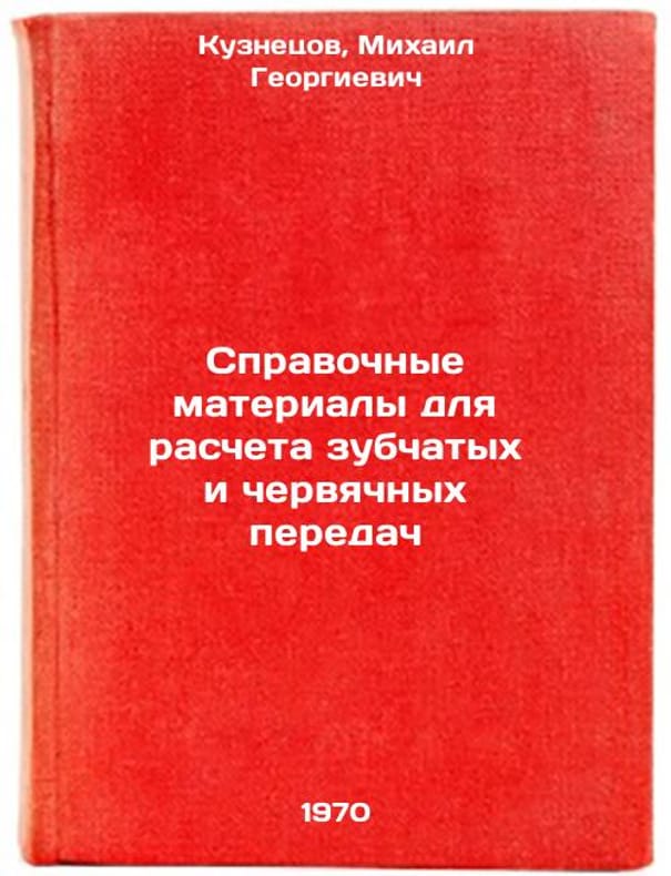In Russian. Kuznetsov, Mikhail Georgievich. Reference materials for the calculation of gears and worm gears. Leningrad: 1970. Spravochnye materialy dlya rascheta zubchatykh i chervyachnykh peredach. In Russian /Reference material for the calculation of gears and worms . All images are for identification of editions only. Several books of the same edition may be available. Please feel free to request photos of available books. SKU7422088