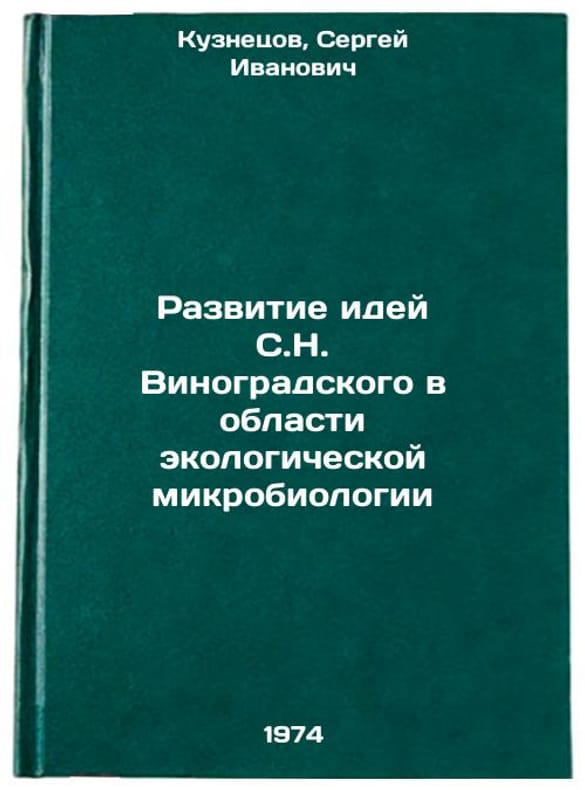 In Russian. Kuznetsov, Sergey Ivanovich. Development of S.N. Vinogradsky's Ideas in the Field of Ecological Microbiology. Moscow: Science, 1974. Razvitie idey S.N. Vinogradskogo v oblasti ekologicheskoy mikrobiologii. In Russian /Development of S.N. Vinogradsky's ideas in the field of ecological microbiology. All images are for identification of editions only. Several books of the same edition may be available. Please feel free to request photos of available books. SKU7422165