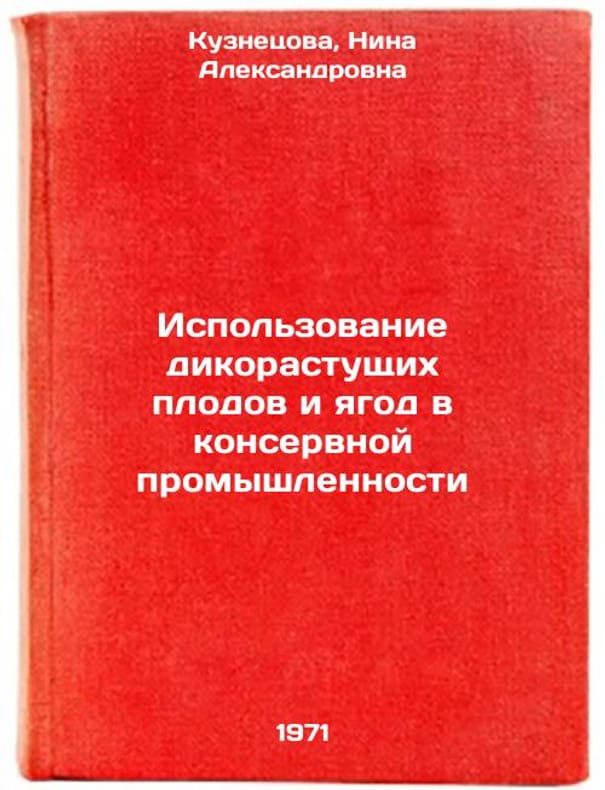 In Russian. Kuznetsova, Nina Aleksandrovna. The use of wild fruits and berries in the canning industry. Moscow: 1971. Ispol'zovanie dikorastushchikh plodov i yagod v konservnoy promyshlennosti. In Russian /Use of wild fruits and berries in the canning industry . All images are for identification of editions only. Several books of the same edition may be available. Please feel free to request photos of available books. SKU7422411