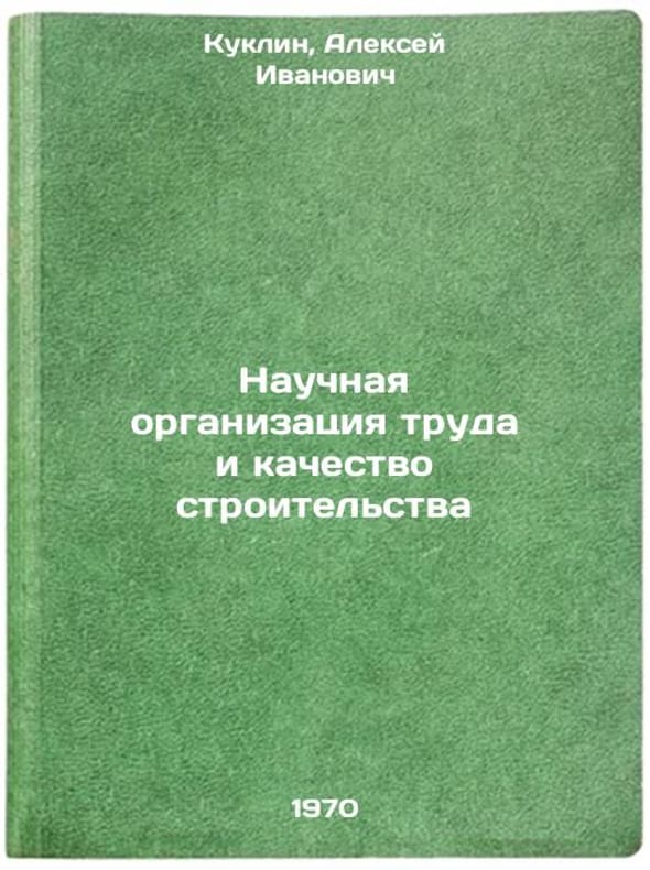 In Russian. Kuklin, Alexey Ivanovich. Scientific Organization of Work and the Quality of Construction. Moscow: Znanie, 1970. Nauchnaya organizatsiya truda i kachestvo stroitel'stva. In Russian /Scientific Organization of Work and the Quality of Construction . All images are for identification of editions only. Several books of the same edition may be available. Please feel free to request photos of available books. SKU7423140