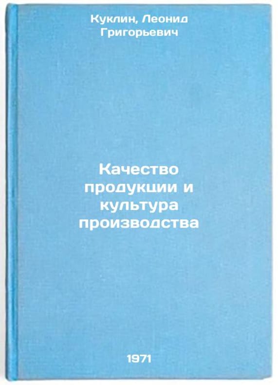 In Russian. Kuklin, Leonid Grigorievich. Product Quality and Production Culture. Moscow: Machine Building, 1971. Kachestvo produktsii i kul'tura proizvodstva. In Russian /Product Quality and Production Culture . All images are for identification of editions only. Several books of the same edition may be available. Please feel free to request photos of available books. SKU7423153
