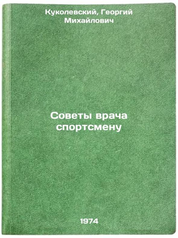 In Russian. Kukolevsky, Georgy Mikhailovich. A doctor's advice to an athlete. Moscow: Medicine, 1974. All images are for identification of editions only. Several books of the same edition may be available. Please feel free to request photos of available books. SKU7423192