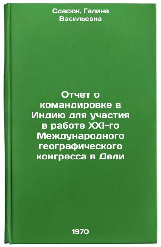 In Russian. Sdasyuk, Galina Vasilievna. Report on a mission to India to participate in the XXI International Geographical Congress in Delhi. Moscow: 1970. Otchet o komandirovke v Indiyu dlya uchastiya v rabote XXI-go Mezhdunarodnogo geograficheskogo kongressa v Deli. In Russian /Report on a mission to India to attend the 21st International Geographical Congress in Delhi . All images are for identification of editions only. Several books of the same edition may be available. Please feel free to request photos of available books. SKU7423935
