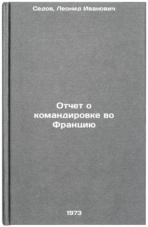 In Russian. Sedov, Leonid Ivanovich. Report on his mission to France. Moscow: 1973. All images are for identification of editions only. Several books of the same edition may be available. Please feel free to request photos of available books. SKU7424585