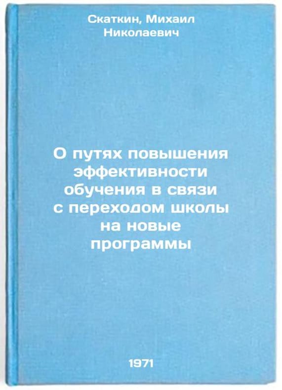In Russian. Skatkin, Mikhail Nikolaevich. Ways to Increase the Efficiency of Education in Connection with the Transition of Schools to New Programs. Moscow: Knowledge, 1971. O putyakh povysheniya effektivnosti obucheniya v svyazi s perekhodom shkoly na novye programmy. In Russian /Ways to Improve the Efficiency of Learning as Schools Transition to New Programs . All images are for identification of editions only. Several books of the same edition may be available. Please feel free to request photos of available books. SKU7424966