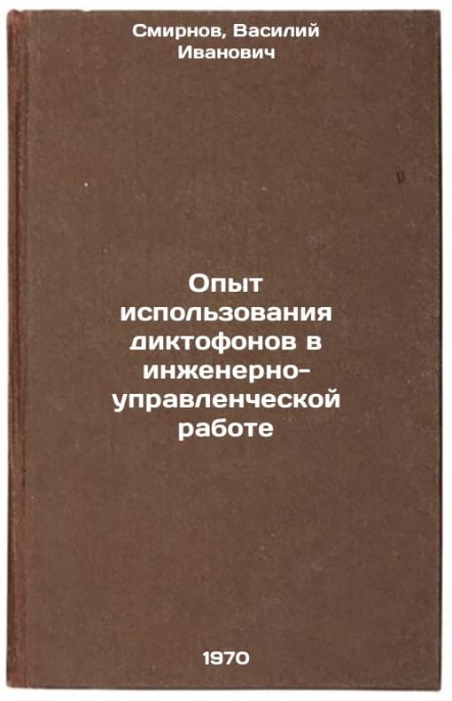 In Russian. Smirnov, Vasily Ivanovich. Experience in the use of dictaphones in engineering and management work. Leningrad: 1970. Opyt ispol'zovaniya diktofonov v inzhenerno-upravlencheskoy rabote. In Russian /Experience with the use of dictaphones in engineering and management . All images are for identification of editions only. Several books of the same edition may be available. Please feel free to request photos of available books. SKU7425268