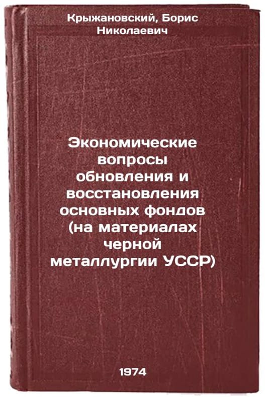In Russian. Kryzhanovsky, Boris Nikolaevich. Economic Issues of Renewal and Restoration of Fixed Assets (on materials of the ferrous metallurgy of the Ukrainian SSR). Kyiv: IDENTP, 1974. Ekonomicheskie voprosy obnovleniya i vosstanovleniya osnovnykh fondov (na materialakh chernoy metallurgii USSR). In Russian /Economic issues of renewal and restoration of fixed assets (on materials of the ferrous metallurgy of the Ukrainian SSR). All images are for identification of editions only. Several books of the same edition may be available. Please feel free to request photos of available books. SKU7426282