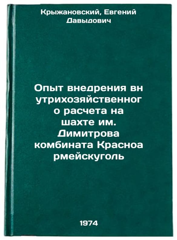In Russian. Kryzhanovsky, Evgeniy Davydovich. Experience of introduction of in-house accounting at the Dimitrov mine of the Krasnoarmeiskugol Combine. Moscow: Central Research Institute of Energy and Coal, 1974. Opyt vnedreniya vnutrikhozyaystvennogo rascheta na shakhte im. Dimitrova kombinata Krasnoarmeyskugol'. In Russian /Experience with the introduction of in-house accounting at the Dimitrov mine of the Krasnoarmeiskugol plant. All images are for identification of editions only. Several books of the same edition may be available. Please feel free to request photos of available books. SKU7426287