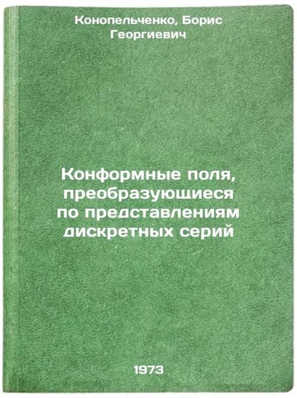 In Russian. Konopelchenko, Boris Georgievich. Conformal fields that are transformed by the representations of discrete series. Novosibirsk: 1973. Konformnye polya, preobrazuyushchiesya po predstavleniyam diskretnykh seriy. In Russian/Conform fields that are transformed by the views of discrete series. All images are for identification of editions only. Several books of the same edition may be available. Please feel free to request photos of available books. SKU7426920