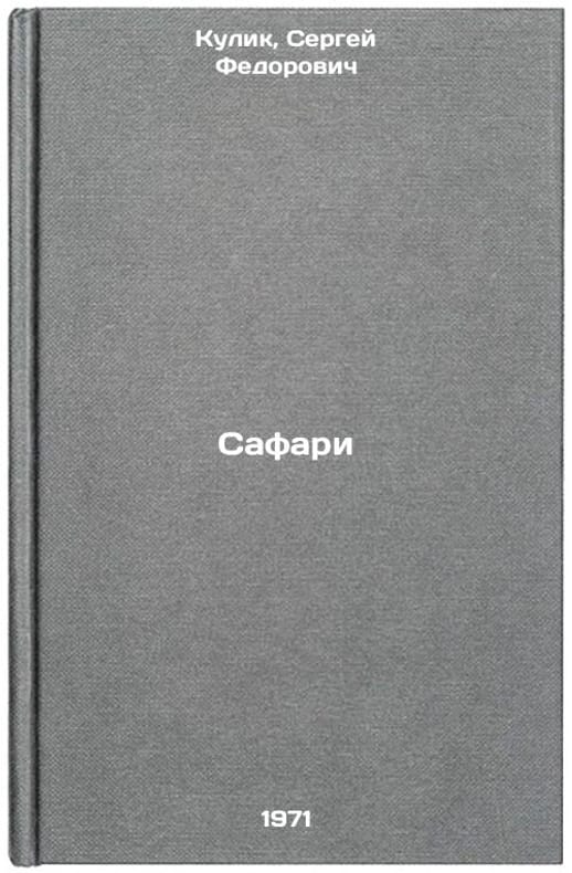In Russian. Kulik, Sergey Fedorovich. Safari. Moscow: Thought, 1971. All images are for identification of editions only. Several books of the same edition may be available. Please feel free to request photos of available books. SKU7427387