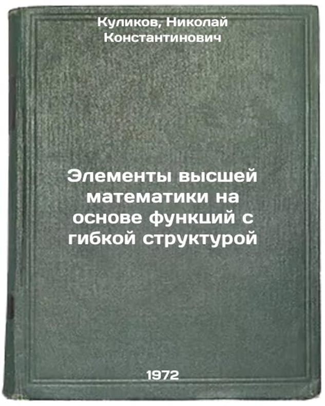 In Russian. Kulikov, Nikolai Konstantinovich. Elements of higher mathematics based on functions with a flexible structure. Moscow: 1972. Elementy vysshey matematiki na osnove funktsiy s gibkoy strukturoy. In Russian/Elements of higher mathematics based on functions with a flexible structure. All images are for identification of editions only. Several books of the same edition may be available. Please feel free to request photos of available books. SKU7427544