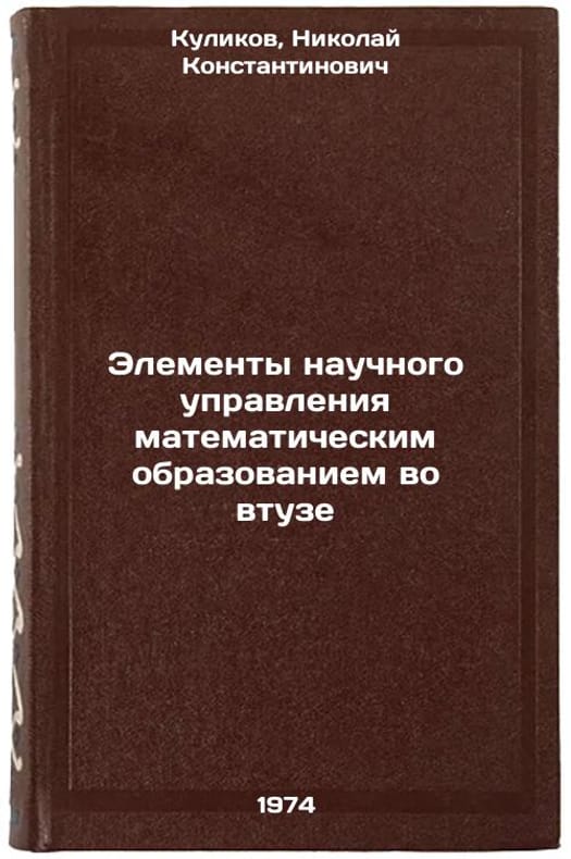 In Russian. Kulikov, Nikolai Konstantinovich. Elements of Scientific Management of Mathematical Education in the Vulture. Moscow: 1974. Elementy nauchnogo upravleniya matematicheskim obrazovaniem vo vtuze. In Russian /Elements of Scientific Management of Mathematical Education in the Entry. All images are for identification of editions only. Several books of the same edition may be available. Please feel free to request photos of available books. SKU7427545