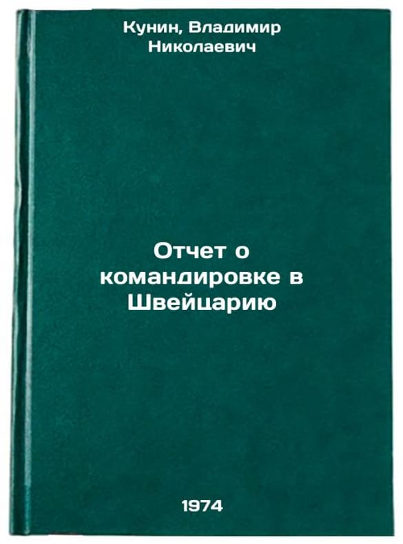 In Russian. Kunin, Vladimir Nikolaevich. Report on mission to Switzerland. Moscow: 1974. Otchet o komandirovke v Shveytsariyu. In Russian /Report on a mission to Switzerland. All images are for identification of editions only. Several books of the same edition may be available. Please feel free to request photos of available books. SKU7428175