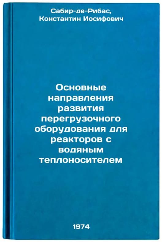 In Russian. Sabir de Ribas, Konstantin Iosifovich. Main directions of development of reloading equipment for reactors with water heat carrier. Moscow: TsNIIatominform, 1974. Osnovnye napravleniya razvitiya peregruzochnogo oborudovaniya dlya reaktorov s vodyanym teplonositelem. In Russian /Main directions of development of reloading equipment for thermal water reactors. All images are for identification of editions only. Several books of the same edition may be available. Please feel free to request photos of available books. SKU7431161