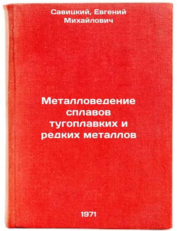 In Russian. Savitsky, Evgeniy Mikhailovich. Metallurgy of refractory and rare metals alloys. Moscow: Science, 1971. Metallovedenie splavov tugoplavkikh i redkikh metallov. In Russian /Metallurgy of refractory and rare metals alloys . All images are for identification of editions only. Several books of the same edition may be available. Please feel free to request photos of available books. SKU7431853
