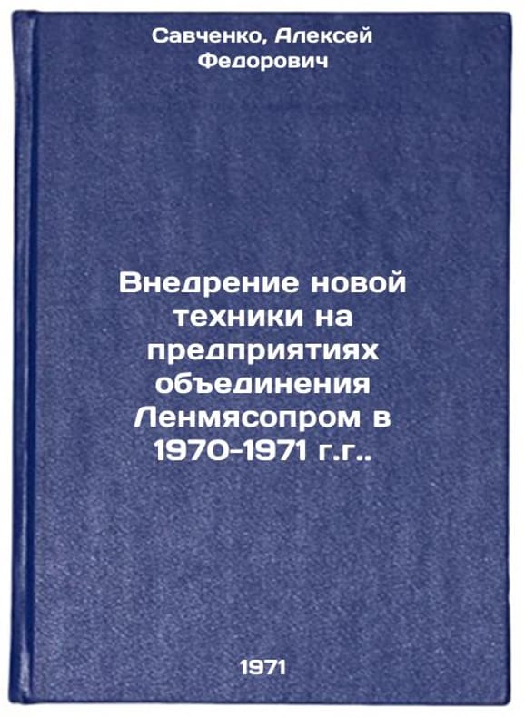 In Russian. Savchenko, Alexey Fedorovich. The introduction of new equipment at the enterprises of the Lenmyasoprom Association in 1970-1971. Moscow: 1971. Vnedrenie novoy tekhniki na predpriyatiyakh obedineniya Lenmyasoprom v 1970-1971 gg. In Russian /The introduction of new equipment at the enterprises of the Lenmyasoprom Association in 1970-1971 . All images are for identification of editions only. Several books of the same edition may be available. Please feel free to request photos of available books. SKU7432132