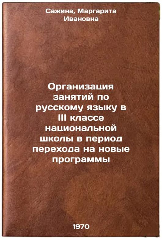 In Russian. Sazhina, Margarita Ivanovna. Organization of Russian language classes in the third grade of the national school during the transition to new programs. Izhevsk: 1970. Organizatsiya zanyatiy po russkomu yazyku v III klasse natsional'noy shkoly v period perekhoda na novye programmy. In Russian /Organization of Russian language classes in the third grade of a national school during the transition to new curricula . All images are for identification of editions only. Several books of the same edition may be available. Please feel free to request photos of available books. SKU7432974