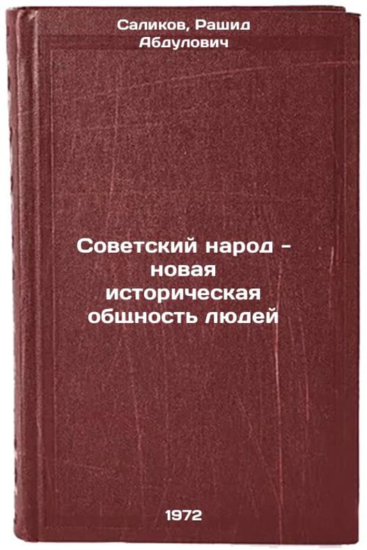 In Russian. Salikov, Rashid Abdulovich. The Soviet people are a new historical community of people. Moscow: 1972. Sovetskiy narod - novaya istoricheskaya obshchnost lyudey. In Russian/The Soviet people are a new historical community of people. All images are for identification of editions only. Several books of the same edition may be available. Please feel free to request photos of available books. SKU7433562