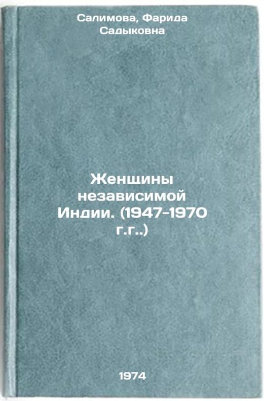 In Russian. Salimova, Farida Sadykovna. Women of Independent India. (1947-1970). Moscow: Science, 1974. Zhenshchiny nezavisimoy Indii. (1947-1970 gg.). In Russian /Women of Independent India. (1947-1970). All images are for identification of editions only. Several books of the same edition may be available. Please feel free to request photos of available books. SKU7433622