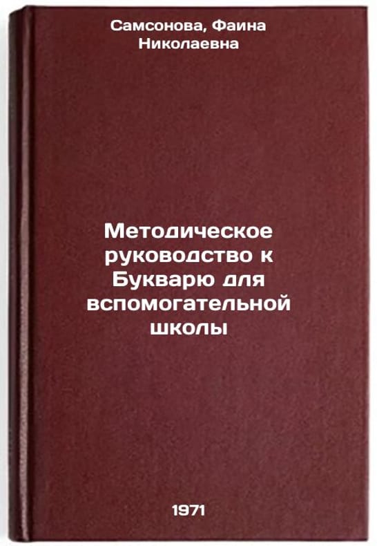 In Russian. Samsonova, Faina Nikolaevna. Methodological Guide to Bukvar for Auxiliary School. Moscow: Enlightenment, 1971. Metodicheskoe rukovodstvo k Bukvaryu dlya vspomogatel'noy shkoly. In Russian /Methodological Guide to the Book for Auxiliary School . All images are for identification of editions only. Several books of the same edition may be available. Please feel free to request photos of available books. SKU7434142