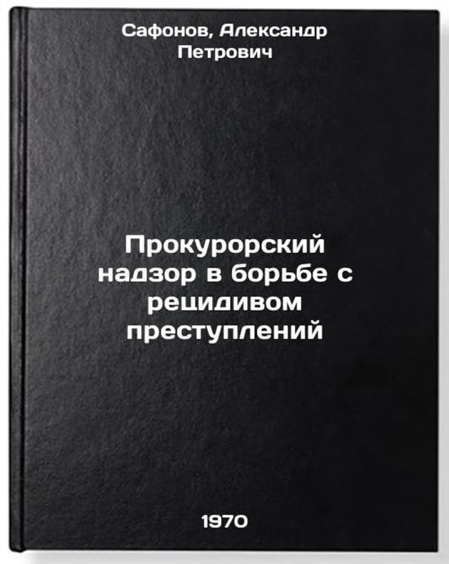 In Russian. Safonov, Alexander Petrovich. Prosecutor's supervision in combating recidivism. Moscow: 1970. Prokurorskiy nadzor v bor'be s retsidivom prestupleniy. In Russian /Procuratorial oversight in combating recidivism . All images are for identification of editions only. Several books of the same edition may be available. Please feel free to request photos of available books. SKU7434378