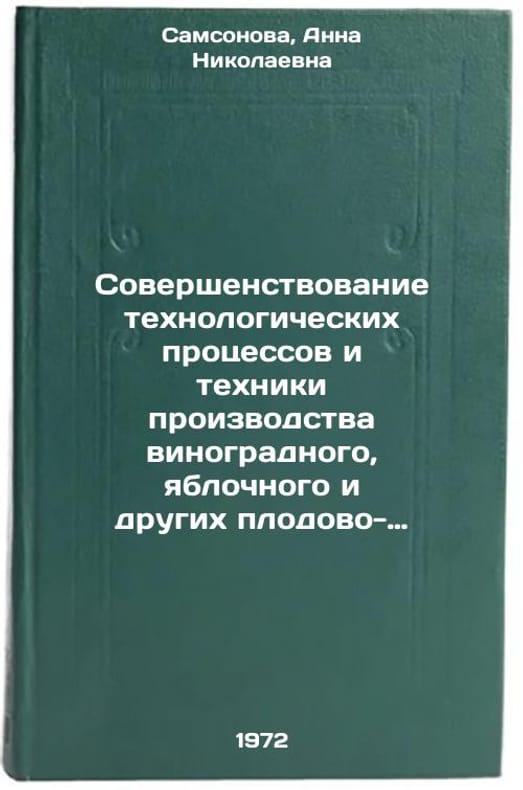 In Russian. Samsonova, Anna Nikolaevna. Improvement of technological processes and techniques for the production of grape, apple and other fruit and berry juices. Moscow: 1972. Sovershenstvovanie tekhnologicheskikh protsessov i tekhniki proizvodstva vinogradnogo, yablochnogo i drugikh plodovo-yagodnykh sokov. In Russian/Improvement of technological processes and techniques for the production of grape, apple and other fruit and berry juices. All images are for identification of editions only. Several books of the same edition may be available. Please feel free to request photos of available books. SKU7434916