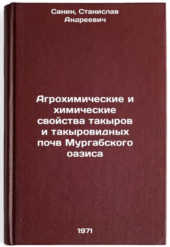 In Russian. Sanin, Stanislav Andreevich. Agrochemical and Chemical Properties of Takirs and Takyr Soils of the Murgab Oasis. Ashgabat: Ylym, 1971. Agrokhimicheskie i khimicheskie svoystva takyrov i takyrovidnykh pochv Murgabskogo oazisa. In Russian /Agrochemical and Chemical Properties of Takirs and Takyr Soils in the Murgab Oasis . All images are for identification of editions only. Several books of the same edition may be available. Please feel free to request photos of available books. SKU7435103