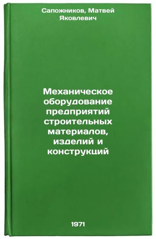 In Russian. Sapozhnikov, Matvey Yakovlevich. Mechanical Equipment of Enterprises of Building Materials, Products and Structures. Moscow: Higher School, 1971. Mekhanicheskoe oborudovanie predpriyatiy stroitel'nykh materialov, izdeliy i konstruktsiy. In Russian /Mechanical Equipment of Construction Materials, Products, and Structures . All images are for identification of editions only. Several books of the same edition may be available. Please feel free to request photos of available books. SKU7435391