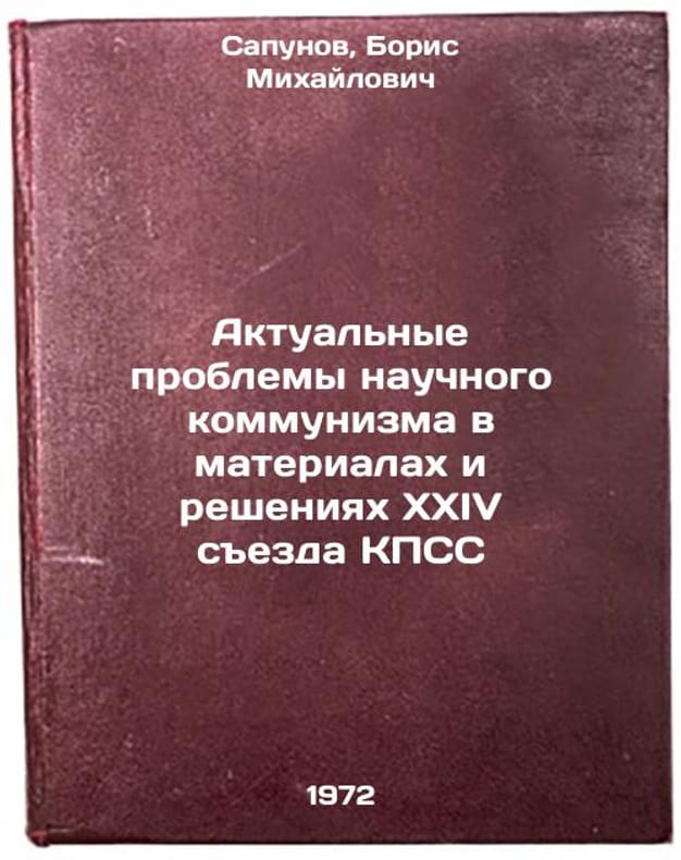 In Russian. Sapunov, Boris Mikhailovich. Actual problems of scientific communism in the materials and decisions of the XXIV Congress of the CPSU. Moscow: 1972. Aktualnye problemy nauchnogo kommunizma v materialakh i resheniyakh XXIV sezda KPSS. In Russian/Actual Problems of Scientific Communism in the Materials and Decisions of the 24th Congress of the CPSU. All images are for identification of editions only. Several books of the same edition may be available. Please feel free to request photos of available books. SKU7435499
