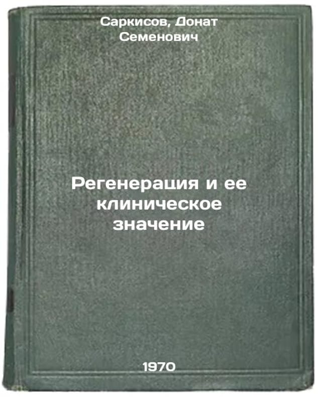 In Russian. Sarkisov, Donat Semenovich. Regeneration and its Clinical Meaning. Moscow: Medicine, 1970. Regeneratsiya i ee klinicheskoe znachenie. In Russian /Regeneration and its Clinical Meaning . All images are for identification of editions only. Several books of the same edition may be available. Please feel free to request photos of available books. SKU7435901