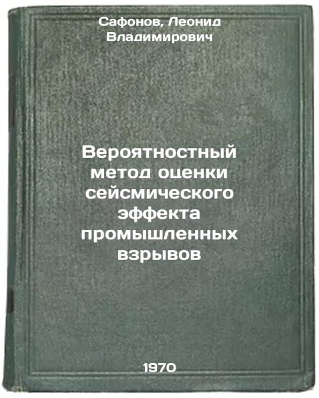 In Russian. Safonov, Leonid Vladimirovich. A probabilistic method for estimating the seismic effect of industrial explosions. Moscow: Science, 1970. Veroyatnostnyy metod otsenki seysmicheskogo effekta promyshlennykh vzryvov. In Russian /Probabilistic method for estimating the seismic effects of industrial explosions . All images are for identification of editions only. Several books of the same edition may be available. Please feel free to request photos of available books. SKU7436424