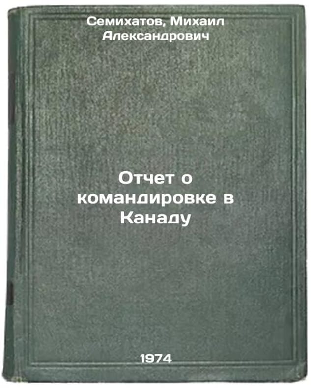 In Russian. Semikhatov, Mikhail Alexandrovich. Report on mission to Canada. Moscow: 1974. All images are for identification of editions only. Several books of the same edition may be available. Please feel free to request photos of available books. SKU7439307