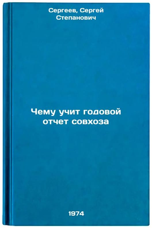 In Russian. Sergeev, Sergey Stepanovich. What the annual report of the state farm teaches. Moscow: Kolos, 1974. Chemu uchit godovoy otchet sovkhoza. In Russian /What the annual report of the state farm teaches. All images are for identification of editions only. Several books of the same edition may be available. Please feel free to request photos of available books. SKU7439481