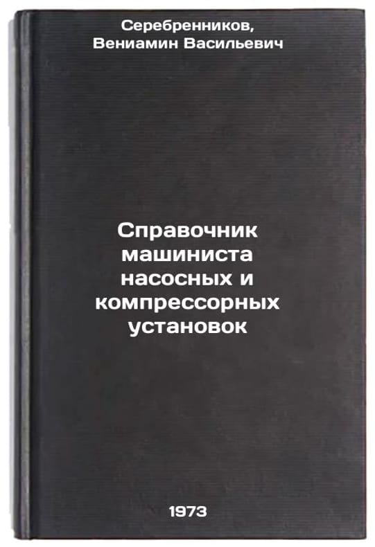 In Russian. Serebrennikov, Veniamin Vasilyevich. Reference book of the pump and compressor unit operator. Kyiv: Technika, 1973. Spravochnik mashinista nasosnykh i kompressornykh ustanovok. In Russian/Pumping and Compressor Plant Engineers Guide. All images are for identification of editions only. Several books of the same edition may be available. Please feel free to request photos of available books. SKU7440012