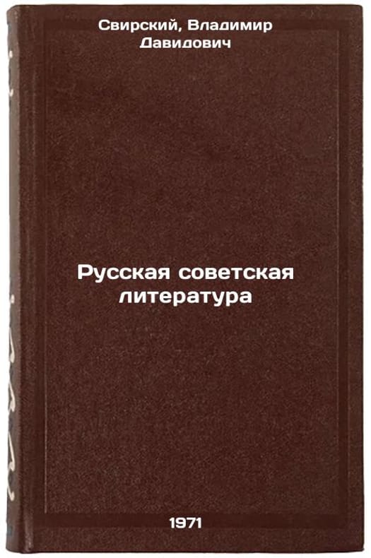 In Russian. Svirsky, Vladimir Davidovich. Russian Soviet Literature. Riga: Zwaigzne,. All images are for identification of editions only. Several books of the same edition may be available. Please feel free to request photos of available books. SKU1005218