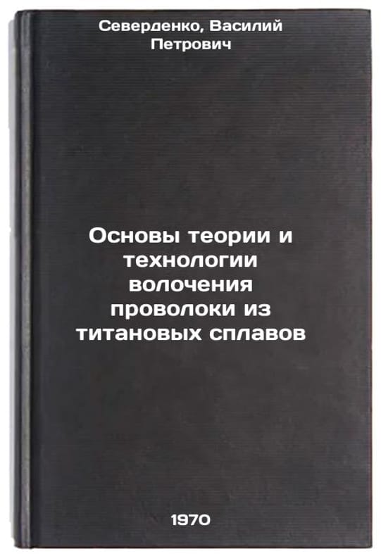 In Russian. Severdenko, Vasily Petrovich. Fundamentals of the theory and technology of drawing wire from titanium alloys. Minsk: Science and Technology, 1970. Osnovy teorii i tekhnologii volocheniya provoloki iz titanovykh splavov. In Russian /Fundamentals of the theory and technology of drawing wire from titanium alloys . All images are for identification of editions only. Several books of the same edition may be available. Please feel free to request photos of available books. SKU7441403