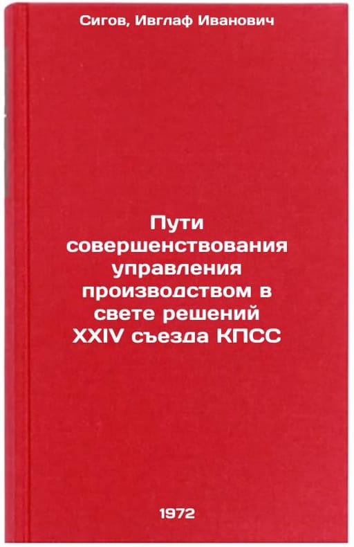 In Russian. Sigov, Ivglaf Ivanovich. Ways of improving production management in the light of the decisions of the XXIV Congress of the CPSU. Leningrad: 1972. Puti sovershenstvovaniya upravleniya proizvodstvom v svete resheniy XXIV sezda KPSS. In Russian/Ways to Improve Production Management in the Light of the Decisions of the 24th Congress of the CPSU. All images are for identification of editions only. Several books of the same edition may be available. Please feel free to request photos of available books. SKU7441692