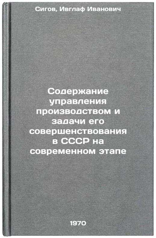 In Russian. Sigov, Ivglaf Ivanovich. Content of production management and tasks of its improvement in the USSR at the present stage. Leningrad: 1970. Soderzhanie upravleniya proizvodstvom i zadachi ego sovershenstvovaniya v SSSR na sovremennom etape. In Russian /Content of production management and tasks of its improvement in the USSR at the present stage . All images are for identification of editions only. Several books of the same edition may be available. Please feel free to request photos of available books. SKU7441693
