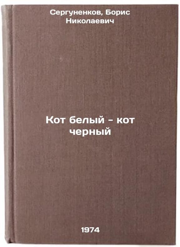 In Russian. Sergunenkov, Boris Nikolaevich. White cat - black cat. Leningrad: Det. lit. Leningrad detachment, 1974. All images are for identification of editions only. Several books of the same edition may be available. Please feel free to request photos of available books. SKU7441931