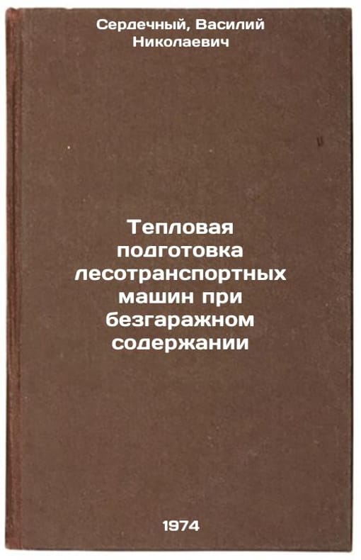 In Russian. Heart, Vasily Nikolaevich. Thermal preparation of forest vehicles with no garage maintenance. Moscow: Forest Industry, 1974. Teplovaya podgotovka lesotransportnykh mashin pri bezgarazhnom soderzhanii. In Russian /Heat treatment of forest vehicles with no garage. All images are for identification of editions only. Several books of the same edition may be available. Please feel free to request photos of available books. SKU7441965