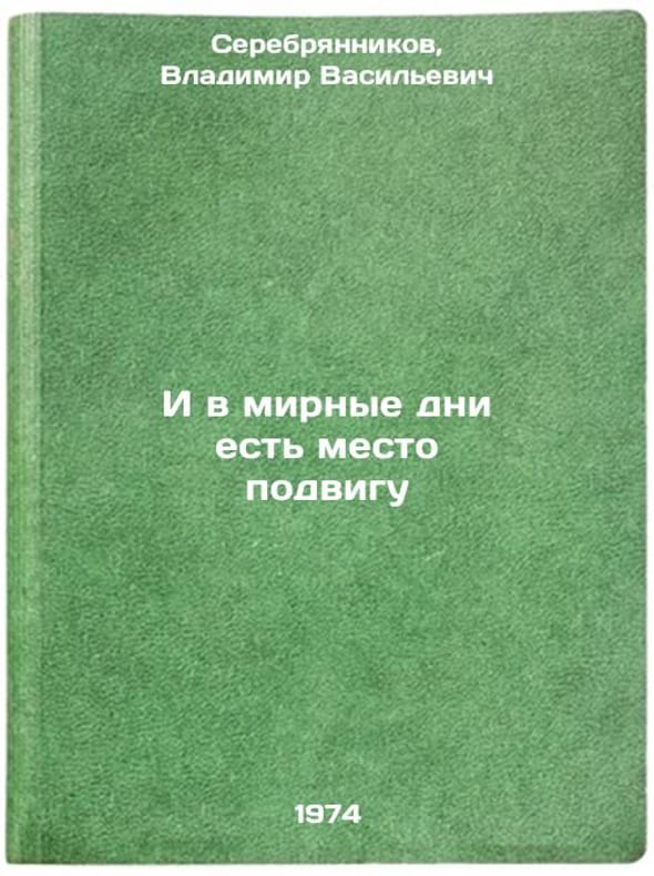 In Russian. Serebryannikov, Vladimir Vasilievich. And in peaceful days there is a place for a feat. Moscow: Znanie, 1974. I v mirnye dni est' mesto podvigu. In Russian /And in peaceful days there is room for a feat. All images are for identification of editions only. Several books of the same edition may be available. Please feel free to request photos of available books. SKU7442029