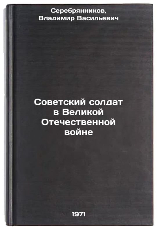 In Russian. Serebryannikov, Vladimir Vasilievich. Soviet Soldier in the Great Patriotic War. Moscow: 1971. Sovetskiy soldat v Velikoy Otechestvennoy voyne. In Russian /Soviet Soldier in the Great Patriotic War . All images are for identification of editions only. Several books of the same edition may be available. Please feel free to request photos of available books. SKU7442032