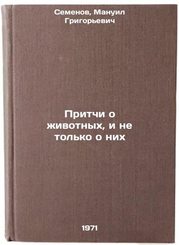 In Russian. Semenov, Manuil Grigorievich. Parables about animals, and not only about them. Stavropol: Book of Books, 1971. Pritchi o zhivotnykh, i ne tol'ko o nikh. In Russian /Parables about animals, and not only about them . All images are for identification of editions only. Several books of the same edition may be available. Please feel free to request photos of available books. SKU7443181