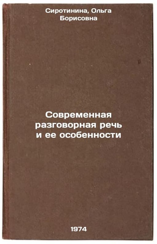 In Russian. Sirotinina, Olga Borisovna. Modern Conversational Speech and Its Features. Moscow: Enlightenment, 1974. Sovremennaya razgovornaya rech' i ee osobennosti. In Russian /Modern Conversational Speech and its Features. All images are for identification of editions only. Several books of the same edition may be available. Please feel free to request photos of available books. SKU7443514