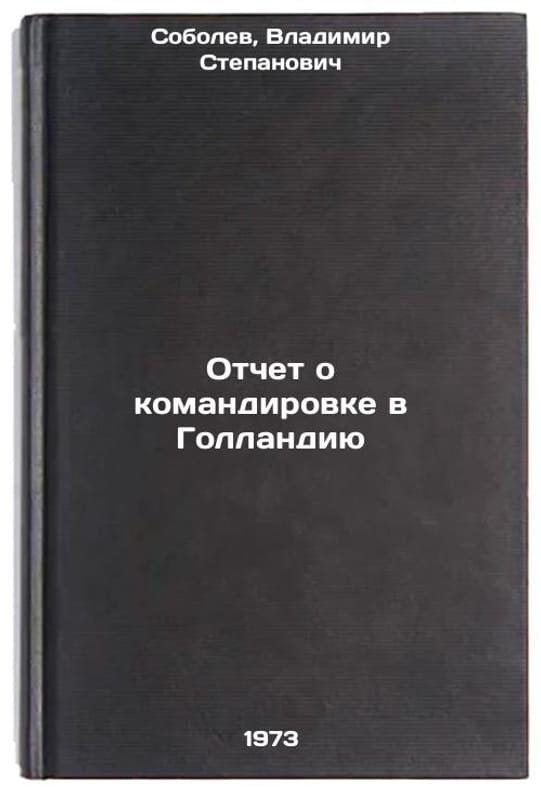 In Russian. Sobolev, Vladimir Stepanovich. Report on his trip to the Netherlands. Moscow: 1973. Otchet o komandirovke v Gollandiyu. In Russian/Report on the mission to the Netherlands. All images are for identification of editions only. Several books of the same edition may be available. Please feel free to request photos of available books. SKU7447885