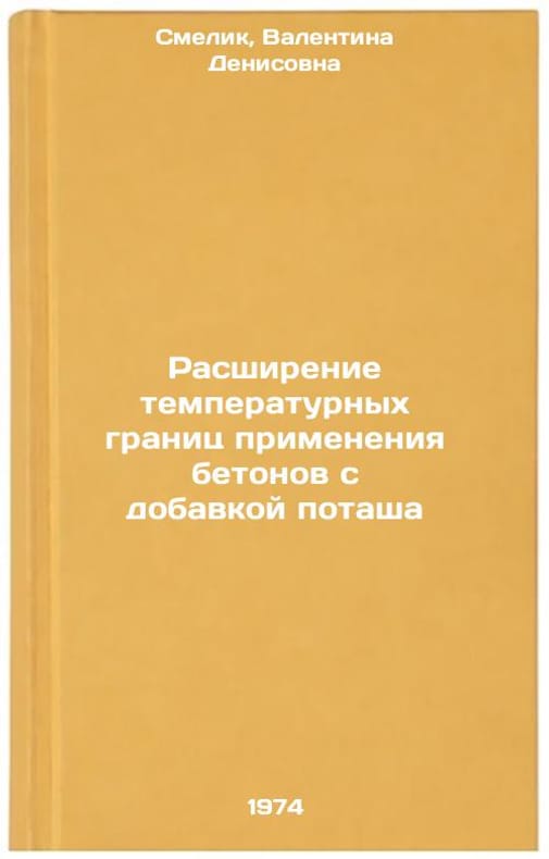 In Russian. Smelik, Valentina Denisovna. Expanding the Temperature Limits of Application of Concrete with Potash Addition. Moscow: Central STI by City Page and Architecture, 1974. Rasshirenie temperaturnykh granits primeneniya betonov s dobavkoy potasha. In Russian /Extension of the temperature limits of the application of potash-added concrete. All images are for identification of editions only. Several books of the same edition may be available. Please feel free to request photos of available books. SKU7448494