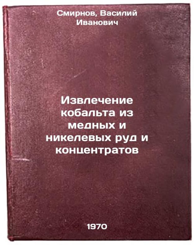 In Russian. Smirnov, Vasily Ivanovich. Extraction of cobalt from copper and nickel ores and concentrates. Moscow: Metallurgy, 1970. Izvlechenie kobal'ta iz mednykh i nikelevykh rud i kontsentratov. In Russian /Extraction of cobalt from copper and nickel ores and concentrates . All images are for identification of editions only. Several books of the same edition may be available. Please feel free to request photos of available books. SKU7448721